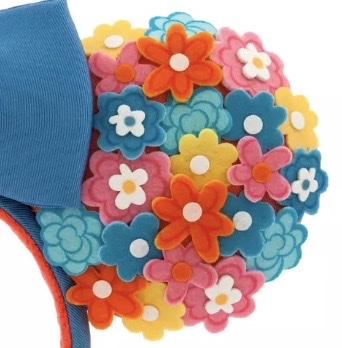 The ears on this headband are the most colorful part. Colorful felt flowers cover the front of the ears. An orange fabric covers the back of the ears.