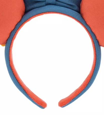 The headband has the same blue fabric as the bow on the outside. Inside the headband is an orange non-slip velour material that matches the fabric on the back of the ears.