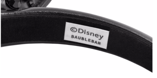 The headband has the same faux black leather material on the outside. On the inside is a non-slip black velour material. Also on the inside of the headband is the Disney/BaubleBar label.
