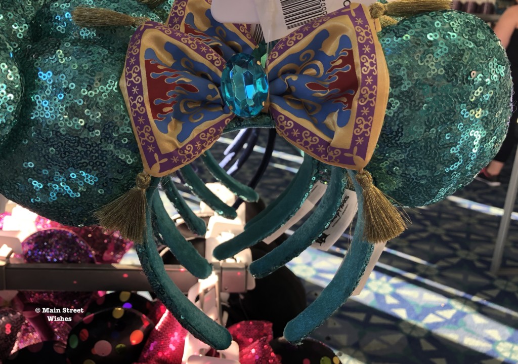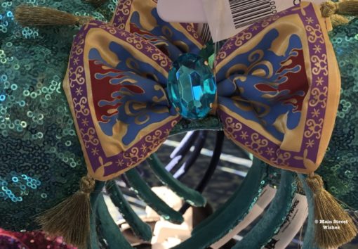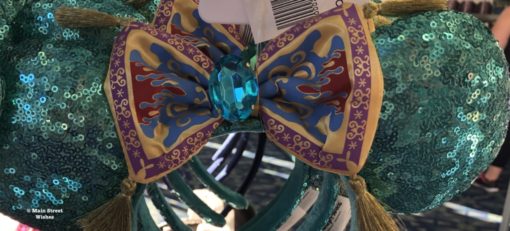 The bow is the best feature on this pair of ears. Instead of being a solid color, the bow is made to look like the Magic Carpet (or Carpet, as Aladdin called it). It’s definitely one of my favorite bows, because of the details, like the fringe on all four corners. In the middle of the bow is a big blue jewel, which looks similar to the one Princess Jasmine has on her headband.