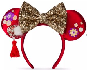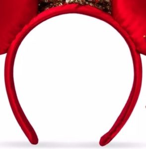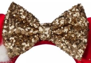 To add another pop of color, the bow is covered in gold sequins. The gold color goes nicely with the red of the ears and headband, but it doesn’t blend in, it definitely draws the eyes to it. The entire bow is covered in the gold sequins, so it looks the same whether you are looking at it from the front or the back.