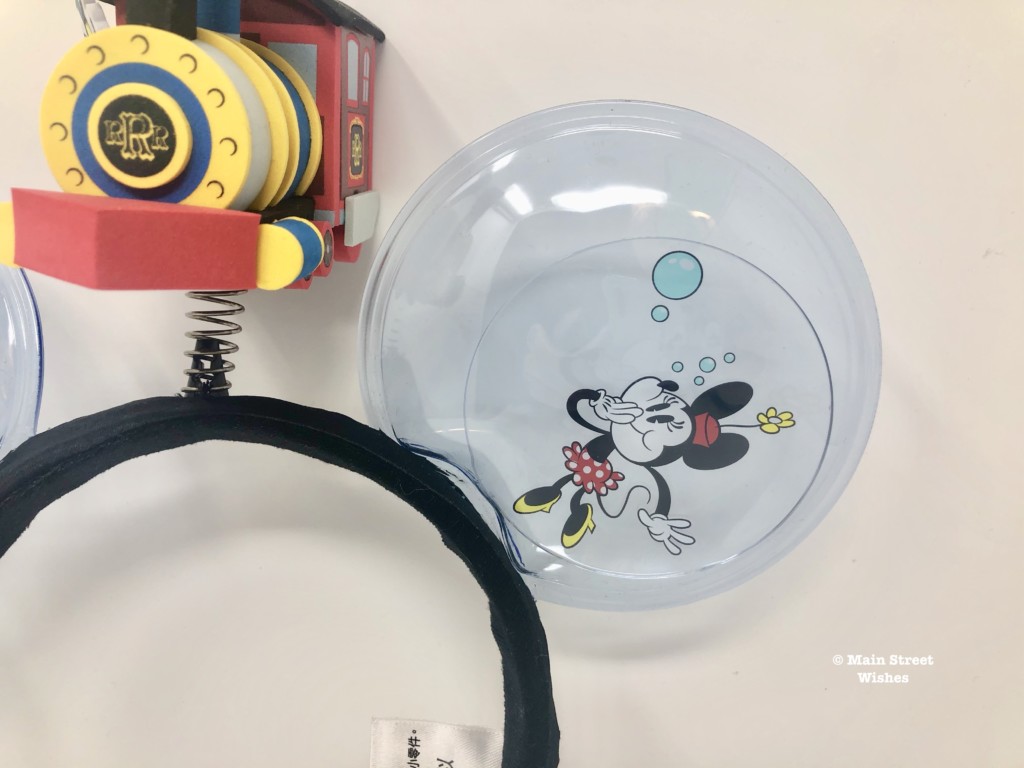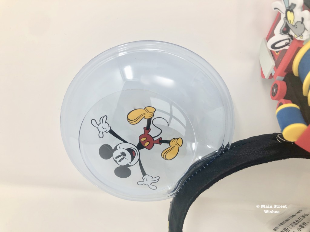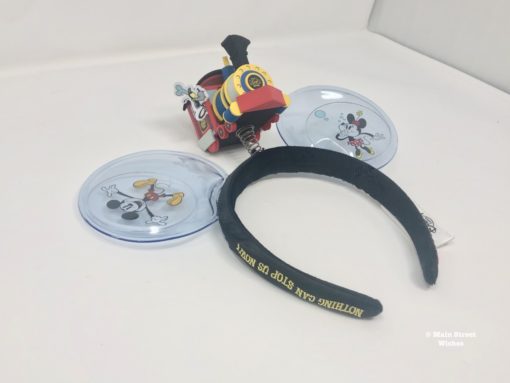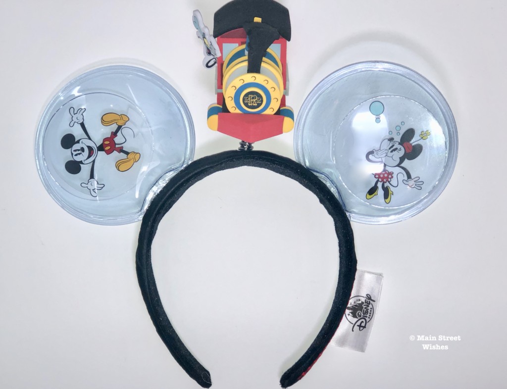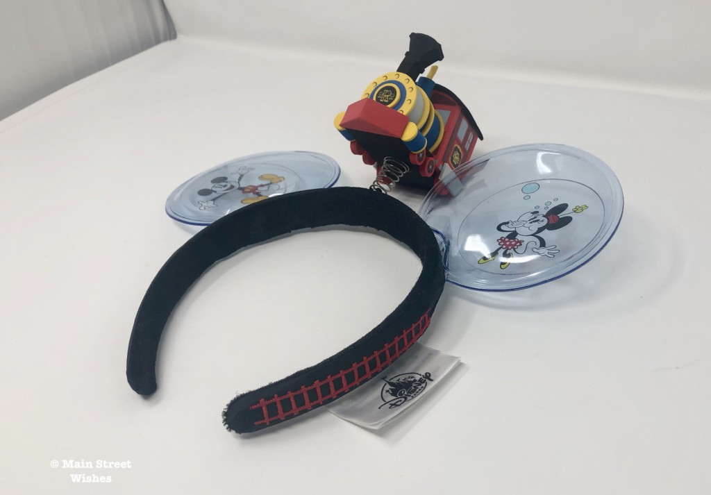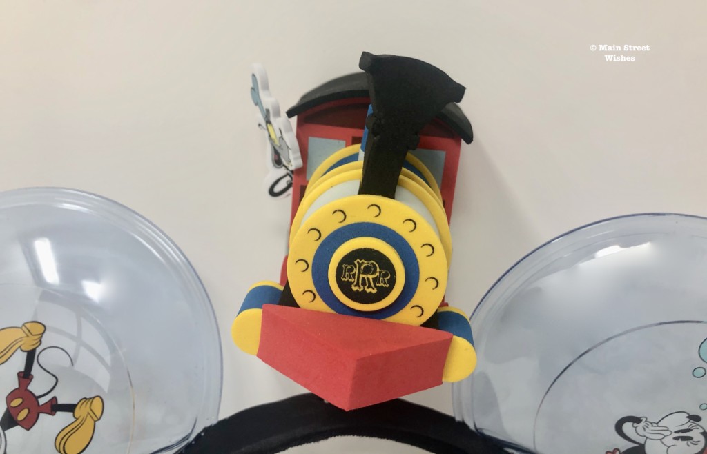 Instead of a bow, these ears have the engine that is the same engine on the ride. It’s made of foam and sits on top of a spring, so it bounces as you walk. Conductor Goofy can be seen hanging out the side window of the train, which adds to the cuteness of these ears.