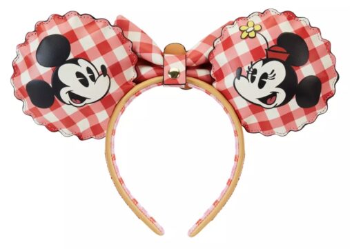 The ears on this pair have two different designs on it. One side of the ears have the strawberry pie design and they’re strawberry scented. The other side of the ears have the checkered picnic blanket design as a background with one ear having Mickey Mouse and the other ear having Minnie Mouse on it.