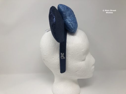 The ears are a sparkly, navy blue color. Unlike the other ears that were recently released, there are no sequins on these ears, only the fabric is sparkly. So, they may not sparkle quite as much as other ears, but there is a little sparkle to them.