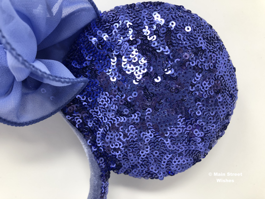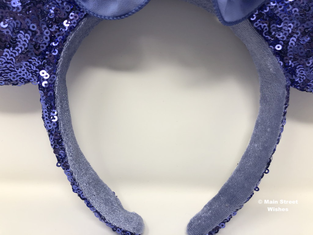 The ears on this headband are covered in the blue-violet sequins. Both the front and back are covered in these sequins, so they’ll sparkle nicely as you’re walking around the parks.