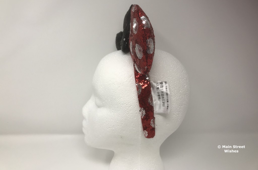Black sequins cover the bow and it is filled with a soft material, which makes it a bit fuller than other bows. Also, as I mentioned above, the headband is set off to the side over one of the ears.