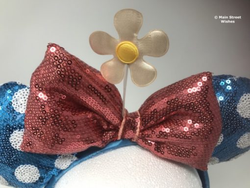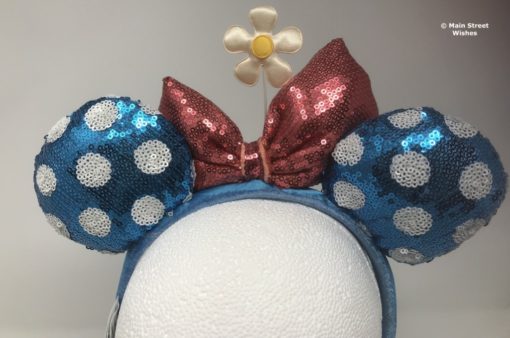 These ears are part of the Minnie Mouse Timeless Collection. The items in this collection have the light blue color and Minnie is wearing her hat with the flower in it. The blue is a very pretty color and I love the flower sticking out from the top of the headband.