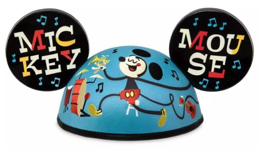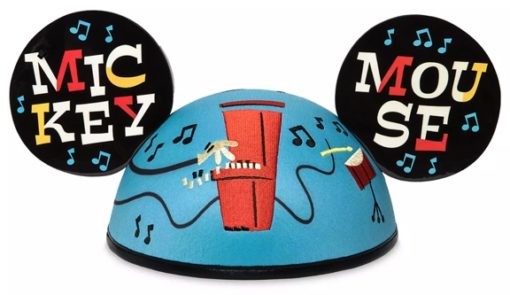 While there is no bow on these ears, there is quite a bit of detail on the hat. A satin material covers the hat and it includes artwork of Mickey playing instruments. The scene wraps around the entire hat to the back.