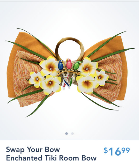 - Enchanted Tiki Room Bow – This bow is a good representation of the attraction it is themed after. From the colors of the bow, to the flowers, to the birds in the center, it’s not hard to tell where the inspiration for this bow came from.