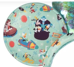 The ears are made of a simulated leather material. Each ear has different Disney characters riding different park attractions. You’ll see attractions like the Mad Tea Party, Pirates of the Caribbean, Astro Orbiter, and the Haunted Mansion. Characters on the ears include Mickey, Minnie, Donald Duck, Daisy Duck, Goofy, Pluto, and Chip ‘n’ Dale.