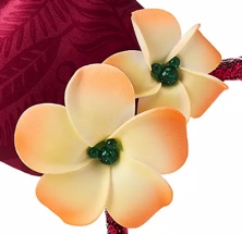 There isn’t a bow on these ears, but there is an artificial plumeria with beaded gem centers. The flowers and gems complement the color of the ears nicely and look very pretty on these ears.