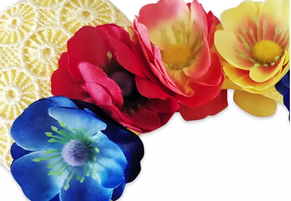 Instead of a bow, there are flowers on the top of these ears. There are six poppies cover the arch of the ears and the two in the middle can also be seen on the back side of the ears. So, if you want you could wear these ears with the back showing since two of the flowers can be seen in the middle of the ears. The back of the headband actually gives a better view of the lace covered ears.