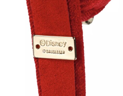 The same red velvet material that covers the ears covers the headband, as well. Also on the inside of one side of the headband is a golden Disney and BaubleBar metal label.
