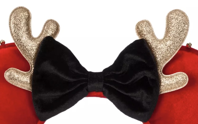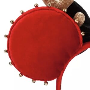A red velvet plush material covers both ears on the front and back of the ears. The edges of the ears are trimmed with “jingle bells.” While the bells look very cute, please note that they do not make a sound, so there’s no actually “jingling” with this headband.