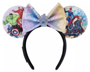 This headband is part of the Women Marvel Artist Series: Sara Pichelli Collection. There are lots of colors on this pair of ears and there are six Avengers represented.