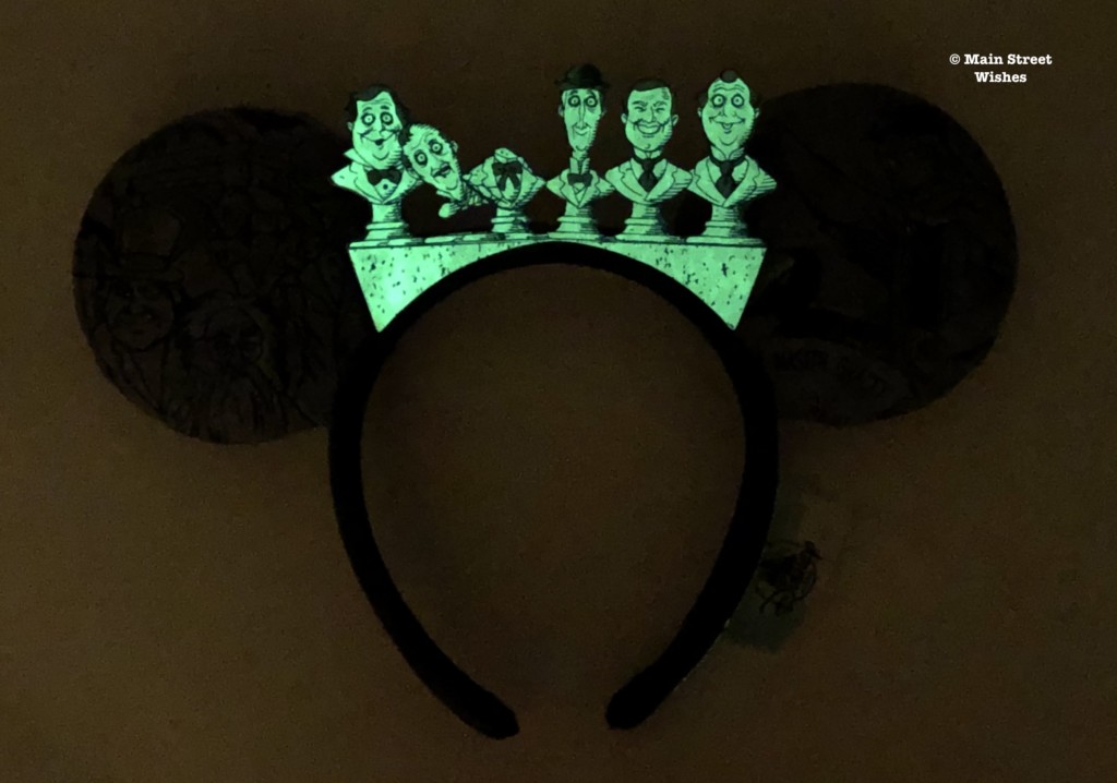 The bow has been replaced with the busts from the graveyard. They are made out of foam, so they shouldn’t be bent too much. The really cool thing about this feature is that it glows in the dark! This is what makes it a fun headband to where a night.