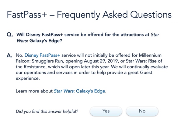 This decision is disappointing guests who may not be as interested in the shows as they are in the rides. You can still book Star Tours from the second tier, but the rest of the choices are shows. Disney has already said that they will not initially be offering FastPasses for the rides in Star Wars: Galaxy’s Edge, so I’m not sure why they changed the tiers.