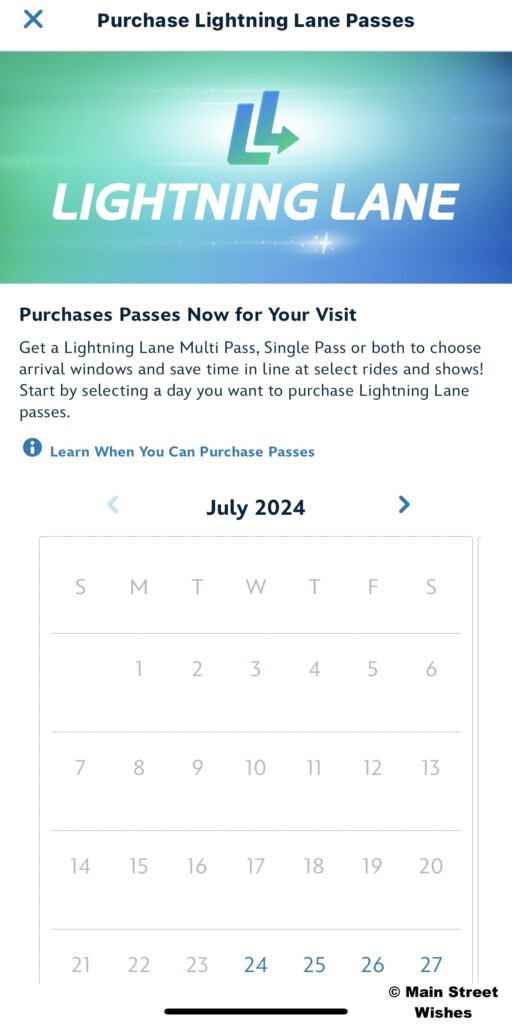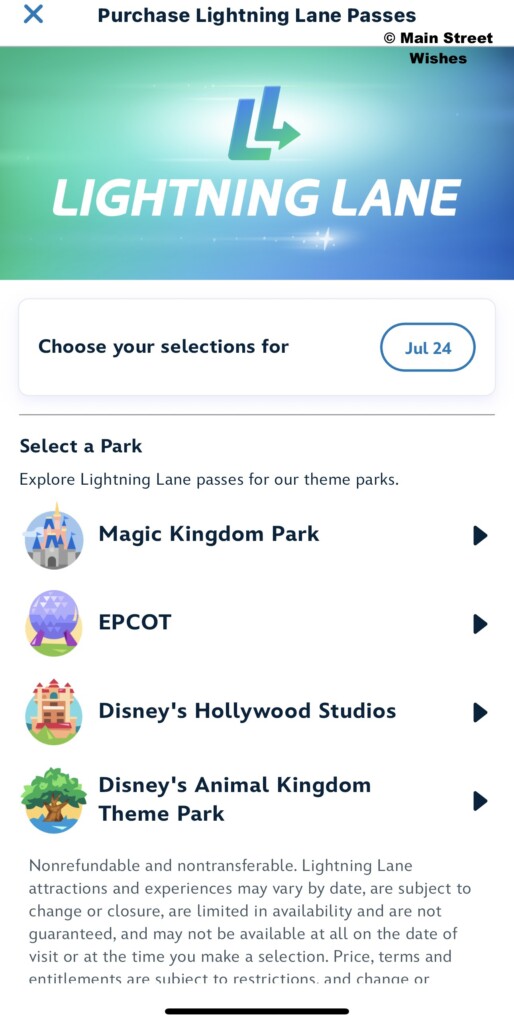 When it is time to book your passes, go to the My Disney Experience app. One the home screen you will see the tile that says Lightning Lane, Multi Pass and Single Pass, this is what you want to choose. Next you will be asked to pick the fist date you want to make selections and then you will be asked to pick the park. Each park will have the cost of the day next to it and the cost will vary depending on the day and park. Today for the Multi Pass, Magic Kingdom is $29 per person, EPCOT is $21 per person, Hollywood Studios is $26 per person, and Animal Kingdom is $18 per person. The Single Pass attractions will be an extra cost, as an example the Tron Single Pass cost $20 per person today.