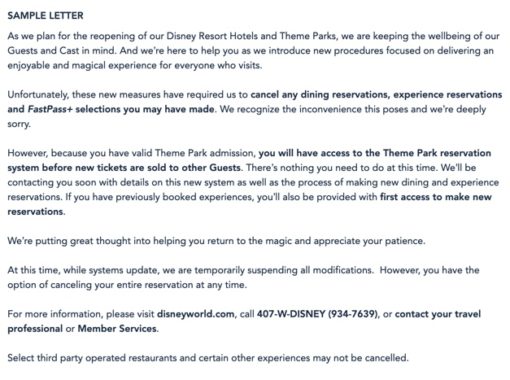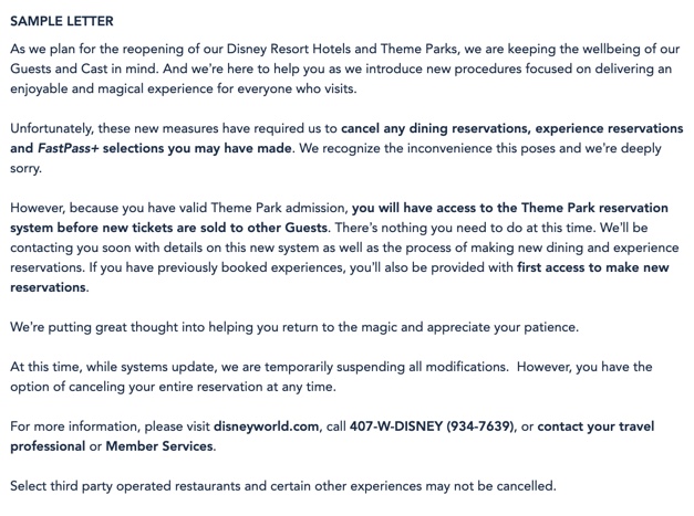 Have you received a letter from Disney about your dining and FastPass+ reservations?