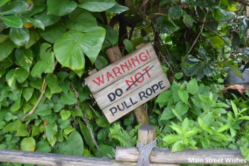 Disney is really good with these little hidden extras. You never know what you might find in the different parks and it’s always fun to find little things like this, because it feels like you have found a secret experience. A lot of people will just walk by signs like this, but Disney puts things like the “Warning do not pull the rope” sign for a reason.