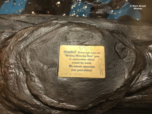 In the middle of the room is a “Wishing Watering Hole” where guests can toss coins and make wishes. Disney collects the coins and uses them to help animal conservation efforts.