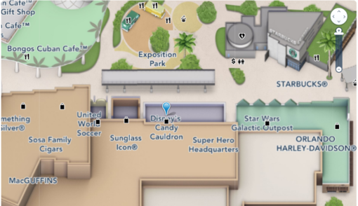 For more fun candy apples and other yummy treats, check out the Candy Cauldron in Disney Springs. You can find it on the West Side across from Exposition Park.