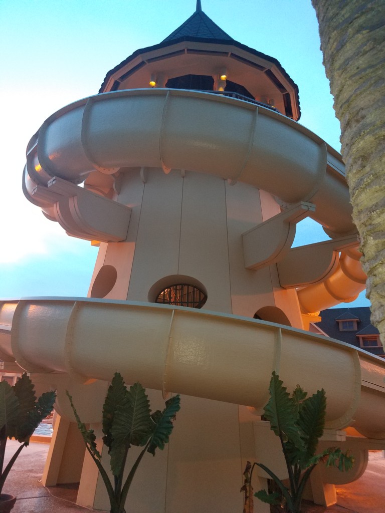 We spent quite a bit of time in the pool in the late afternoon/early evening. The water was so warm; like a bath! There are several lifeguards on duty at all times, so safety precautions are certainly in place. The water slide is fantastic – so much fun! There’s also a smaller splash area for littler kids, as well as a hot tub for grown ups (and children at parents’ discretion).