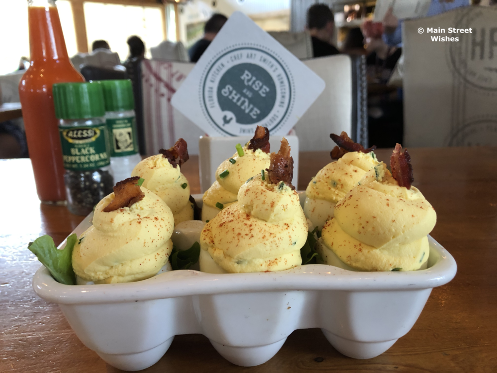 In addition to the Church Lady Deviled Eggs, the appetizer menu has things like fried green tomatoes, biscuits topped with fried chicken thighs, spicy cauliflower wings, fried pickles, shrimp cocktail, hushpuppies, and a southern charcuterie. There’s a nice selection of salads, soups, sandwiches, and entrees as well. One of the most popular entrees here is Art’s Famous Fried Chicken, so if you are a fan of fried chicken I would give this one a try. See the full menu here.