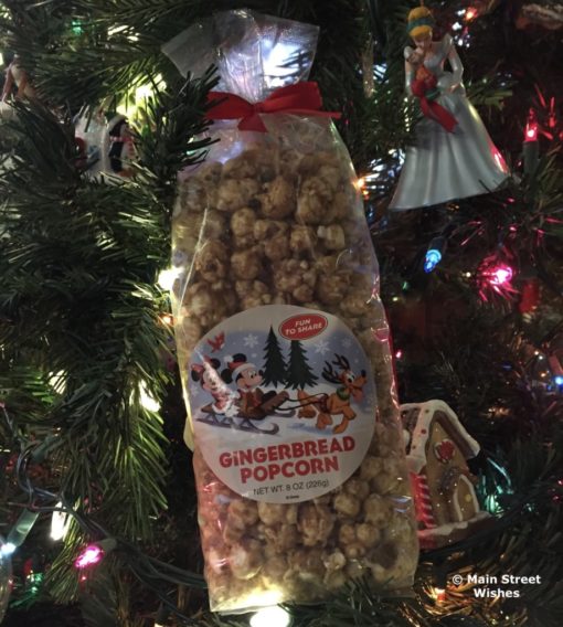 Disney’s Main Street Popcorn is a treat that can be found in most shops in the parks and at Disney Resort hotels. The popcorn comes in clear bags and is available in many different flavors. During the holiday season you might be able to find special flavors for the season, like the gingerbread flavored popcorn shown below.
