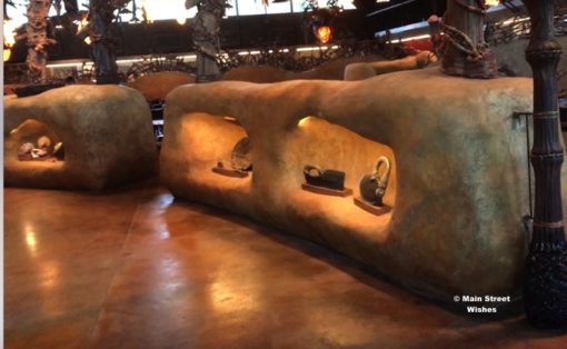 Satu’li Canteen is the quick service location in the Pandora area. The design of it fits in perfectly with its surroundings. The idea is that it used to be a mess hall, but is now decorated with Na’vi art and cultural items. It’s definitely worth taking a look around the dining area when you eat there. There is quite a bit to see and it helps to continue the feeling that you are in Pandora.
