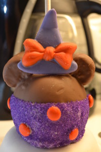I love these apples! During the last trip my husband and I split one of the “Witch Minnie” apples. It was so good and the little candy witch hat was really cute.