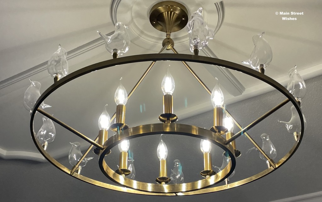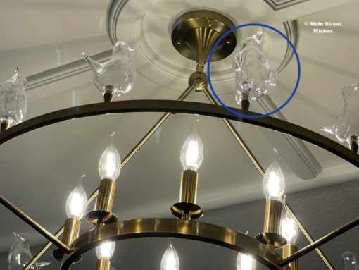 One of the first things I noticed was the penguin on the chandelier. All the other birds look the same, but there’s one penguin mixed in. It’s such a cute detail in these rooms! Plus, the glass birds are pretty.
