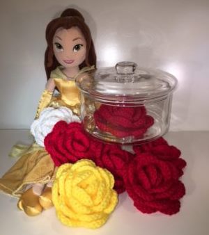 I can’t think of a more iconic symbol of the Beauty & the Beast love story, than the red rose. (Have I mentioned it’s my favorite movie yet?) One my favorite things to do to unwind is crochet, which is why I set out to combine my love of all things Beauty & the Beast, with crochet. In doing so I learned how to make these beautiful, 3D applique roses!!