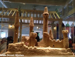 Once you have been buzzed, check out the theme of the restaurant as you are walking in. The beach theme is pretty fun. They have beach umbrellas as decorations and they have a sand castle in a case that we were lucky enough to sit by. The kids loved looking at this in between eating and meeting characters!