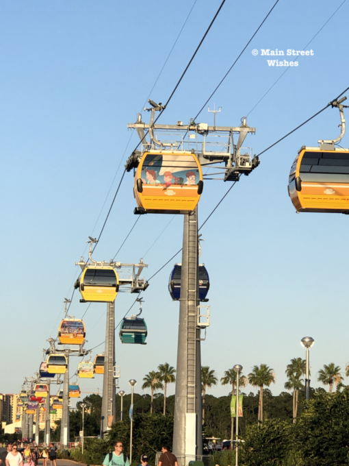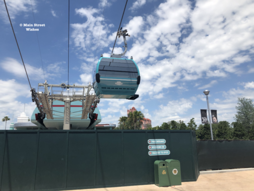The two areas I was able to see were Hollywood Studios and Epcot. The Hollywood Studios station and the gondolas at that station have definitely been tested more, but when I visited I did not see them running, they were stationary. However, the coverings were off all of the gondolas, so you can see the different colors and designs. There are quite a few gondolas with character designs on them and it’s going to be fun seeing those pass overhead when it opens.
