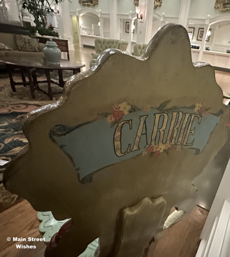 A little known piece of information about the chairs is that they have names on the back. One chair has the name “Carrie” and the other chair has the name “Kiley.”