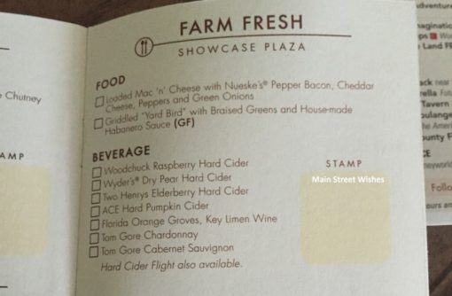 Grab a Food & Wine Festival booklet ahead of time. These passports list all the food and drinks available at each of the booths and serve as a checklist for guests to use to keep track of what they have tried. You can also get a stamp from each country’s booth. By looking at the checklist ahead of time you can get an idea of which items you would like to try and avoid standing around, unsure of where to go to next.