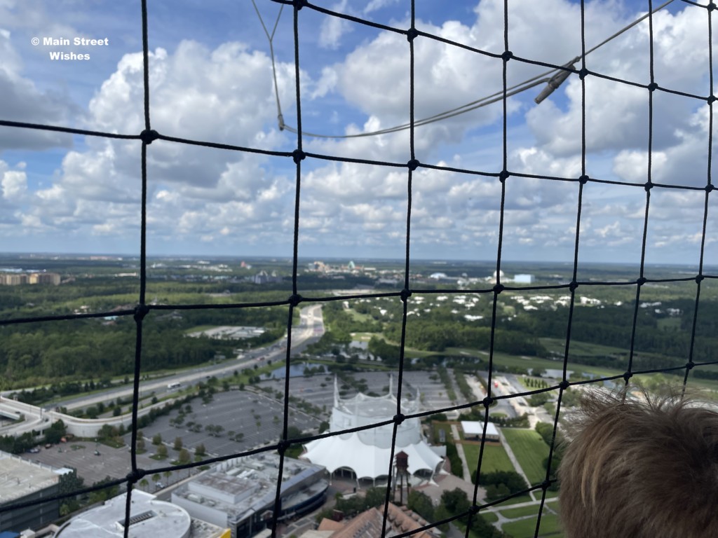 I’m going to be honest, being up 400ft made me nervous, but I just held on to the handrail that circles around the whole gondola. There’s netting as well, to make sure everyone who went up in the gondola also goes down in the gondola. If you have a major fear of heights, this definitely is not for you. However, if you’re someone like me who likes thrill rides, but still closes her eyes on the big drop for Splash Mountain or when the ride vehicle for Expedition Everest is climbing up that first hill, you’ll probably be able to do this, just hold on to the railing and don’t look directly down.