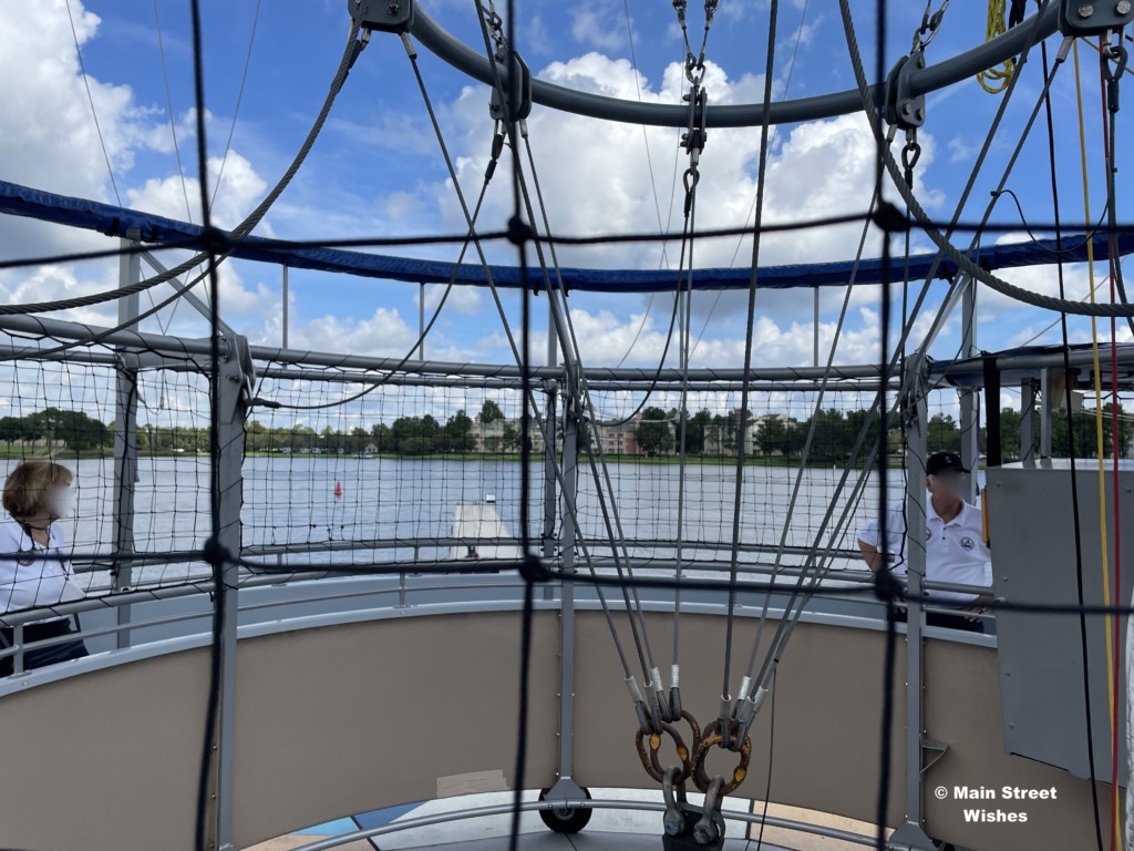 According to the Aerophile at Disney Springs website, the balloon is filled with 210,000 cubic feet of helium and the basket is 19 feet in diameter. When at capacity, the gondola can hold up to 29 people, plus the Aerophile-certified pilot. The ride lasts 8 – 10 minutes and the views are pretty cool, especially if you catch it on a day when winds are low, because then you’ll go up the full 400ft. The pilots are certified and very informative, so feel free to ask them any questions you may have about the area or the balloon. Our pilot was more than happy to chat and answer questions from our group. Keep in mind that this experience is weather dependent. So even if it’s not very windy on the ground, if it’s too windy higher up the balloon cannot go up.