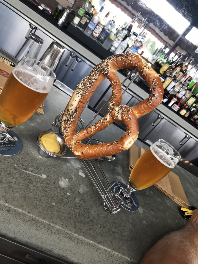Here we decided to both get a beer and both ordered the Old Elephant IPA, Tampa Bay Brewing. We love to try local brews when we travel and this was a good one! The special was $6.50 for this particular beer. We paired it with a HUGE pretzel ($8) that came with mustard and beer cheese. The pretzel had a lot of seeds on it which made a mess but were delicious! All together, our tab was $22.37.