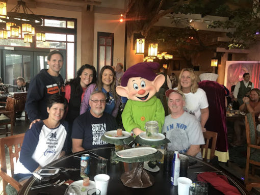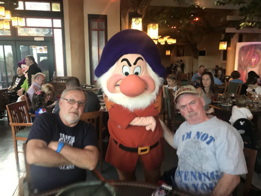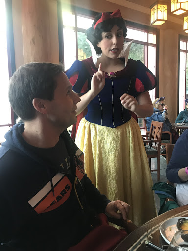 In between appetizers and our meal, Snow White and Dopey visited our table.