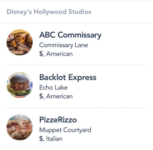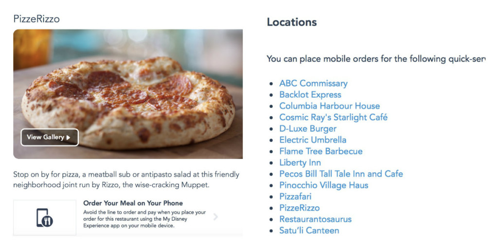 Guest can also find the full list on Disney’s website. If a quick service restaurant is available for mobile ordering, the app icon for ordering food will show below the restaurant’s description. Click the icon to get a list of all the participating restaurants.