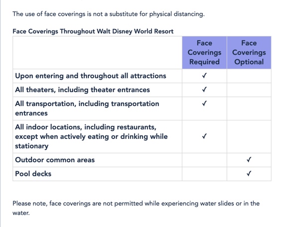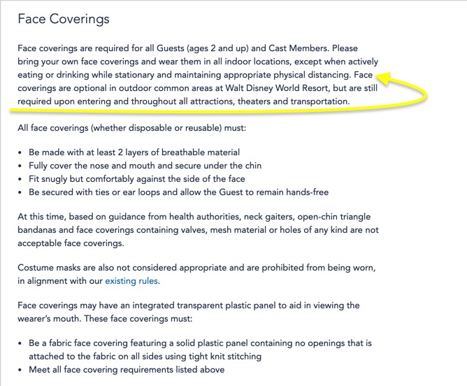 In Disney World’s policy change they state that while the masks are option in outdoor common areas, they must still be worn when entering and throughout all attractions, theaters, and transportation. This means that if an attraction queue or a theater is outside guests have to wear masks. Still, it’s nice that once guests have exited the attraction and are back in a common area the mask can come off. I think that will help with the amount of times guests have been changing out masks during the day, which is nice.