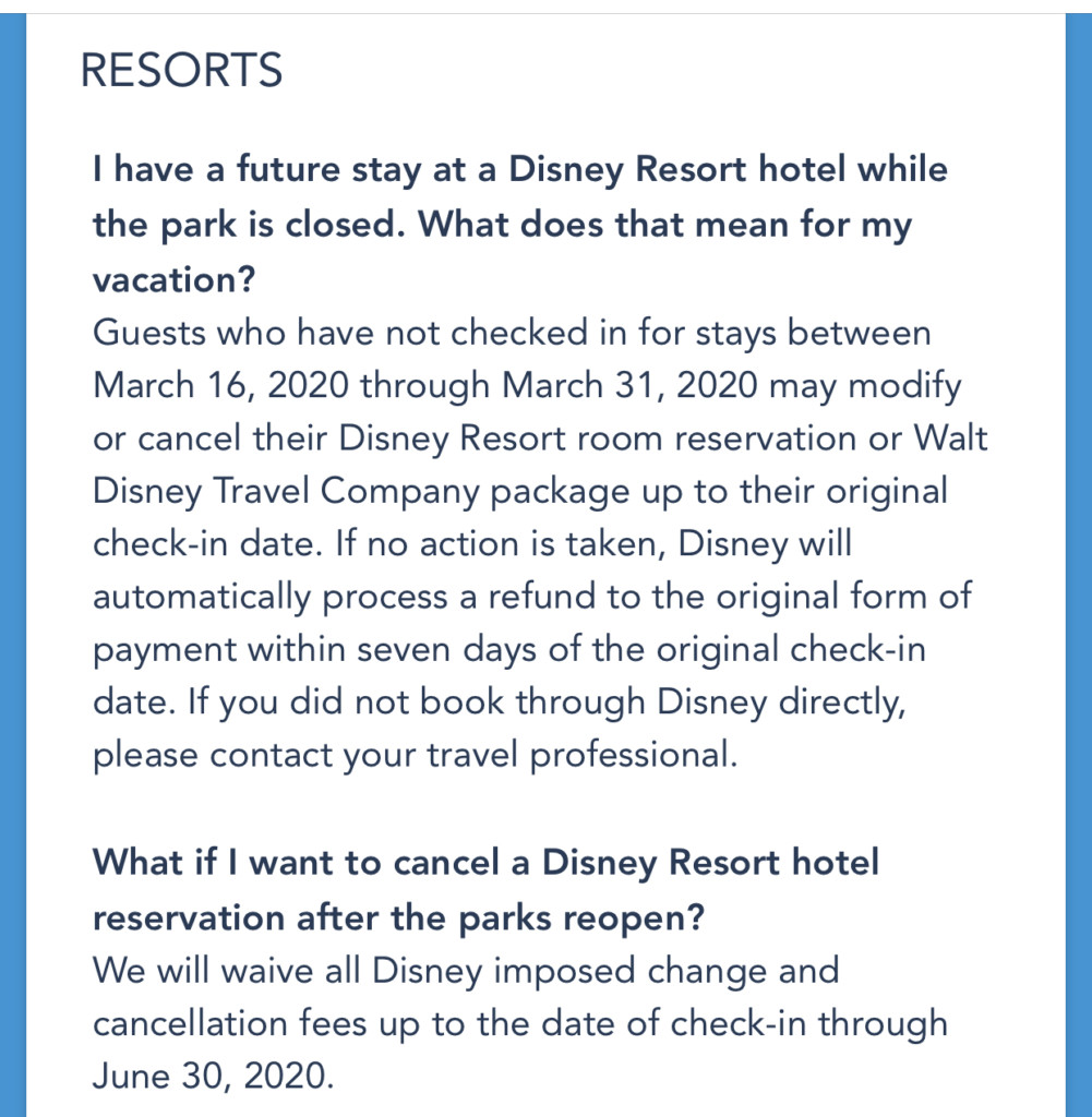 Disney also noted that they will waive change and cancellation fees, up to the date of check-in, through June 30, 2020.