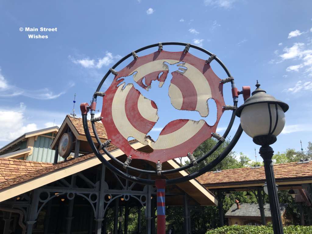 There are lots of fun details to this ride. The cannon balls in the picture are located next to a cannon with “Goofy is the Great Goofini” painted on it, but those are just a couple of the details. One of the funnier details is what looks like a target that has an outline of Goofy in the middle, as if Goofy flew right through it. Lots of fun details here, so make sure to take a look around as you are making your way through the queue line.