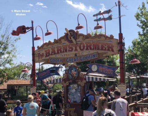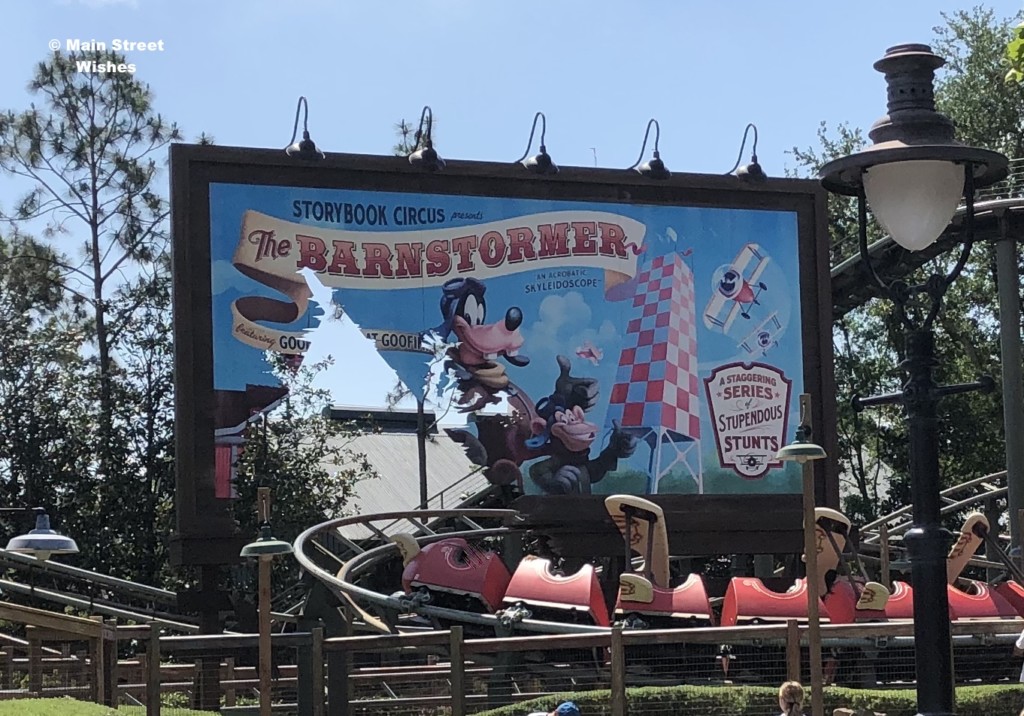 Situated in between Dumbo the Flying Elephant and the Walt Disney World Railroad Station (with the Casey Jr. Splash ‘N’ Soak Station) this roller coaster is perfect for little ones who aren’t big enough to ride the other roller coasters. For The Barnstormer, the minimum height requirement is 35″ and the ride has small drops, so it’s good for kiddos who are going on a roller coaster for the first time. It’s an outdoor roller coaster, so guests get views of Storybook Circus as they are racing around on The Barnstormer.