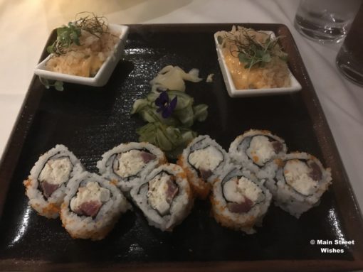 The menu at California Grill has a variety of items to choose from, so everyone can usually find something they like. Guests will find things like pizza, sushi, seafood, steak, chicken, soups, salads, and pasta on the menu. There is also a separate kids menu where they get to create their own meal from a list of different menu items.