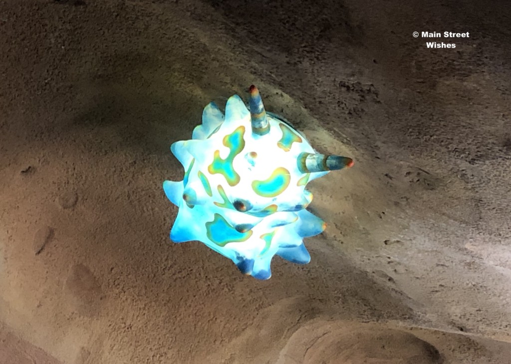 Congratulations to Melanie, Lisa, and Lee who all knew the light can be found in the queue for Ariel’s Grotto! This is the area where guests were once able to meet Ariel and take pictures. Just like other queue lines, this one is designed to fit the theme of the attraction, so there’s a lot of shells and other things that give the idea that you are supposed to be in the ocean visiting Ariel. Right now, the meet and greet is temporarily unavailable, but hopefully it will return at some point in the future. It was a fun place for pictures! It was also the one place guests could have their picture take with Ariel as a mermaid.