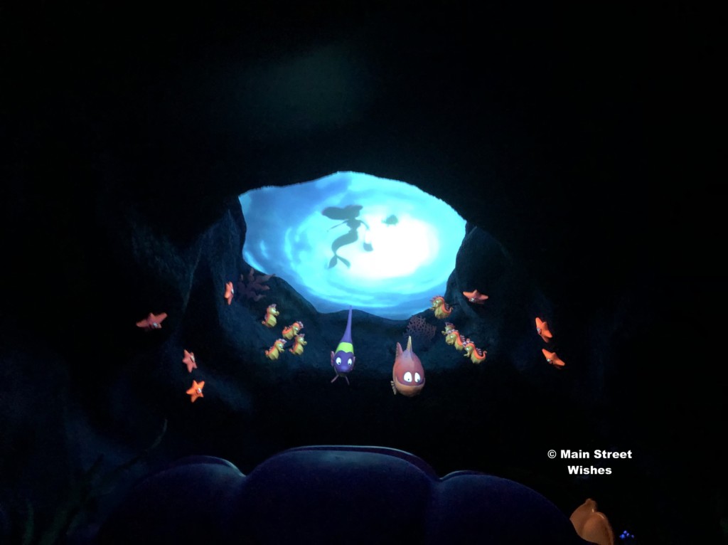 Ariel’s Grotto is located next to Under the Sea ~ Journey of The Little Mermaid in Fantasyland at Magic Kingdom. This attraction takes guests on a journey through the story of The Little Mermaid in a clam mobile. Guests will see characters and scenes they know from the movie, and hear some of the classic songs. It’s a cute ride that the whole family can enjoy.