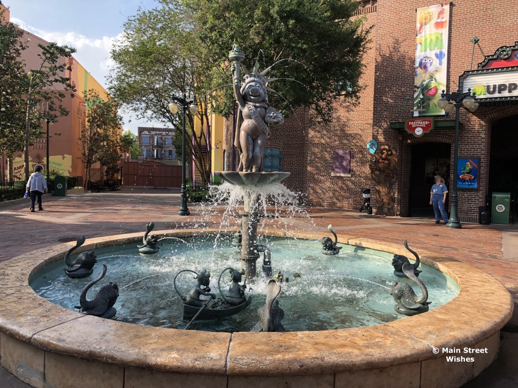 The bike is also located across from Muppet Vision 3D. This is one of Disney’s fun 3D movies that comes along with extras, like Waldorf and Statler animatronics in a balcony in the theater making their typical sarcastic comments. There are fun Muppet details all throughout the queue area, including props that look like they are used for the show. There’s also a video that plays while guests wait to enter the theater. Outside the theater, and across from the balcony with the bike, is the fountain of Miss Piggy. This area is a great photo opportunity, especially if anyone in your group is a Muppet fan.